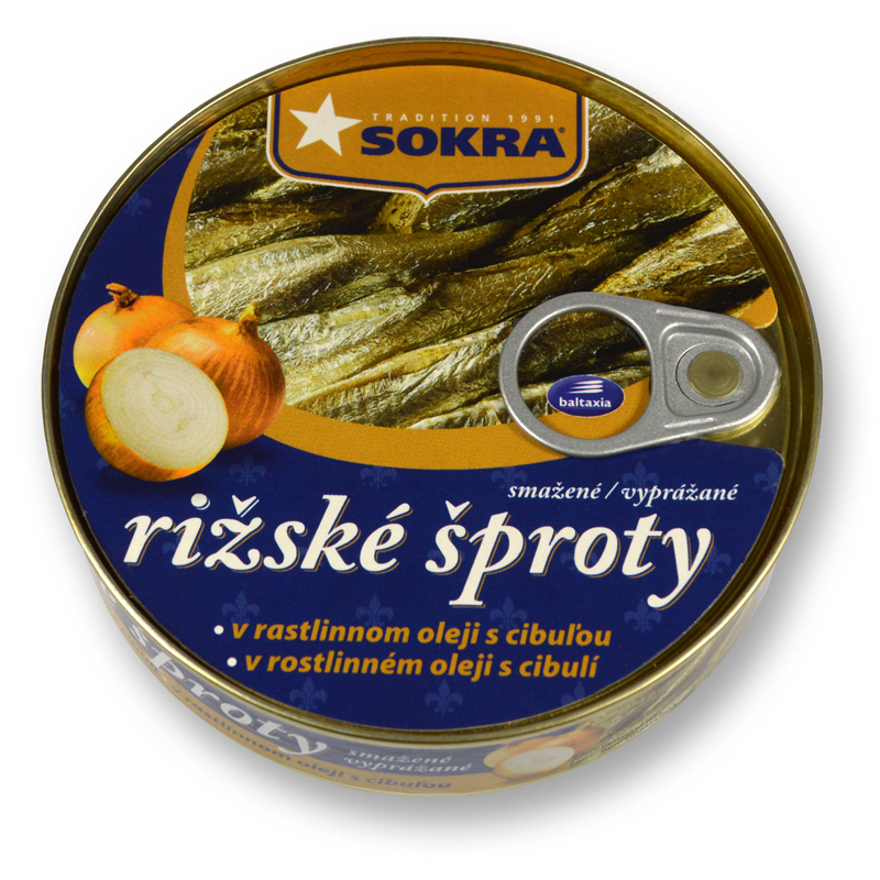 Smažené rižské šproty v rostlinném oleji s cibulí SOKRA 16…