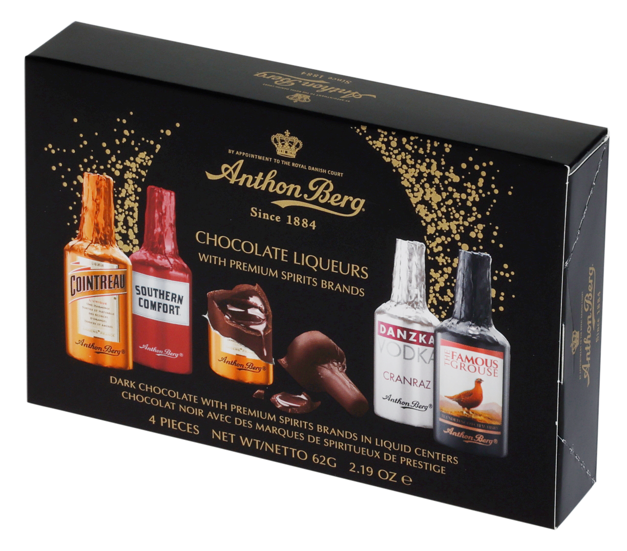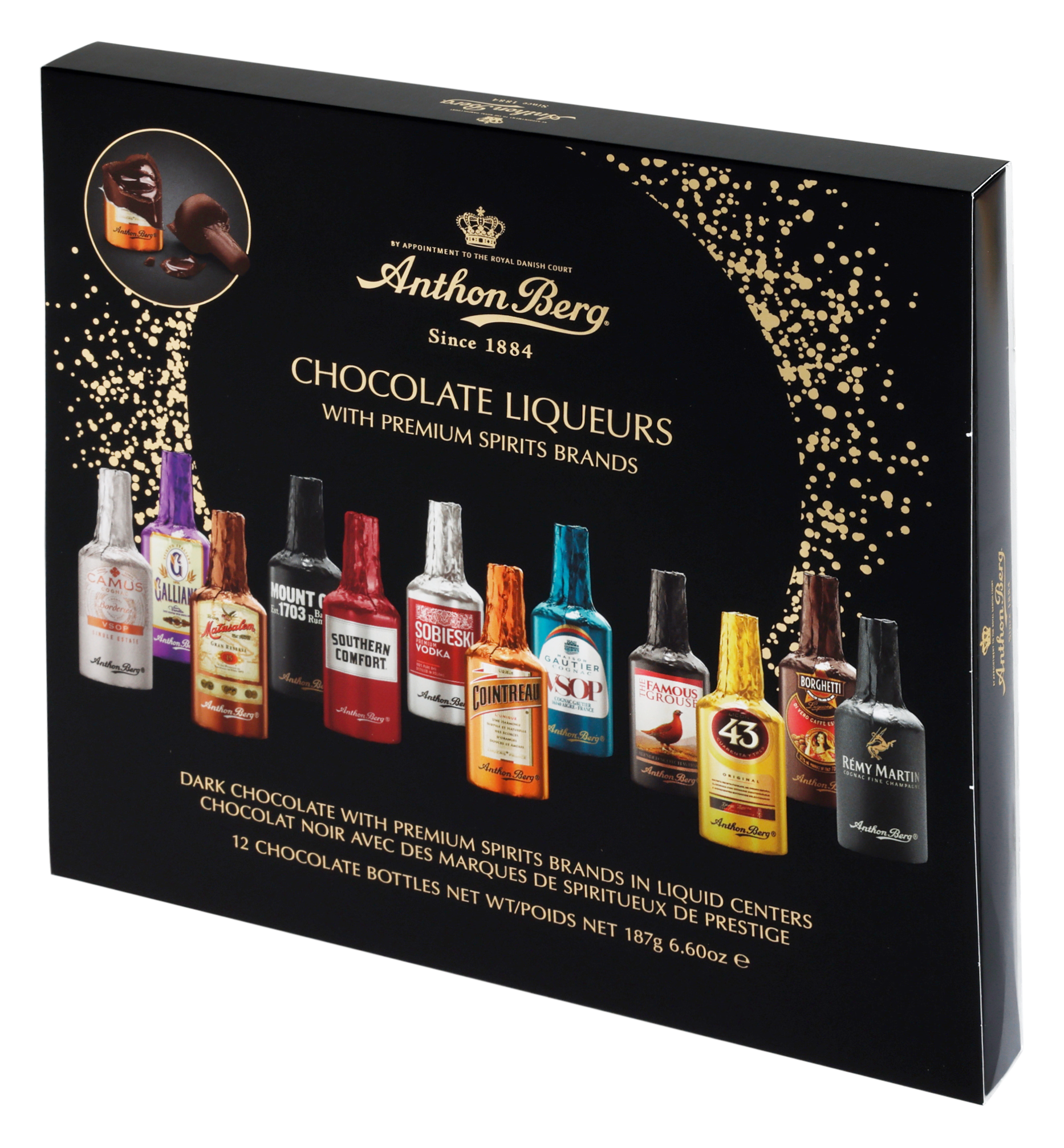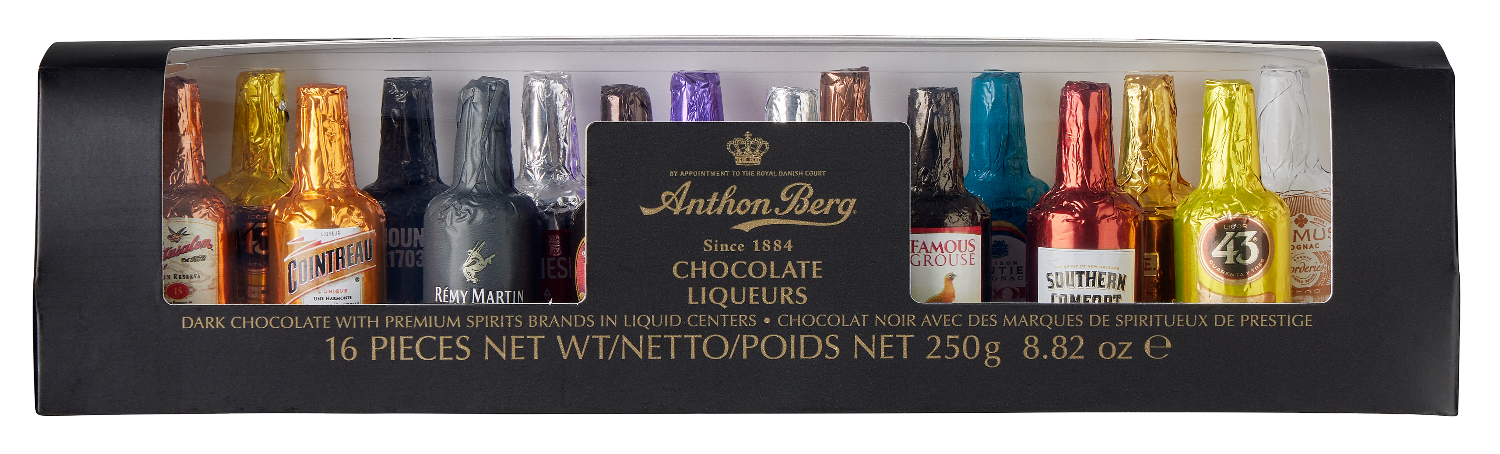 AB009Anthon Berg lahvičky s alkoholem "liqueurs" 16 ks 250g