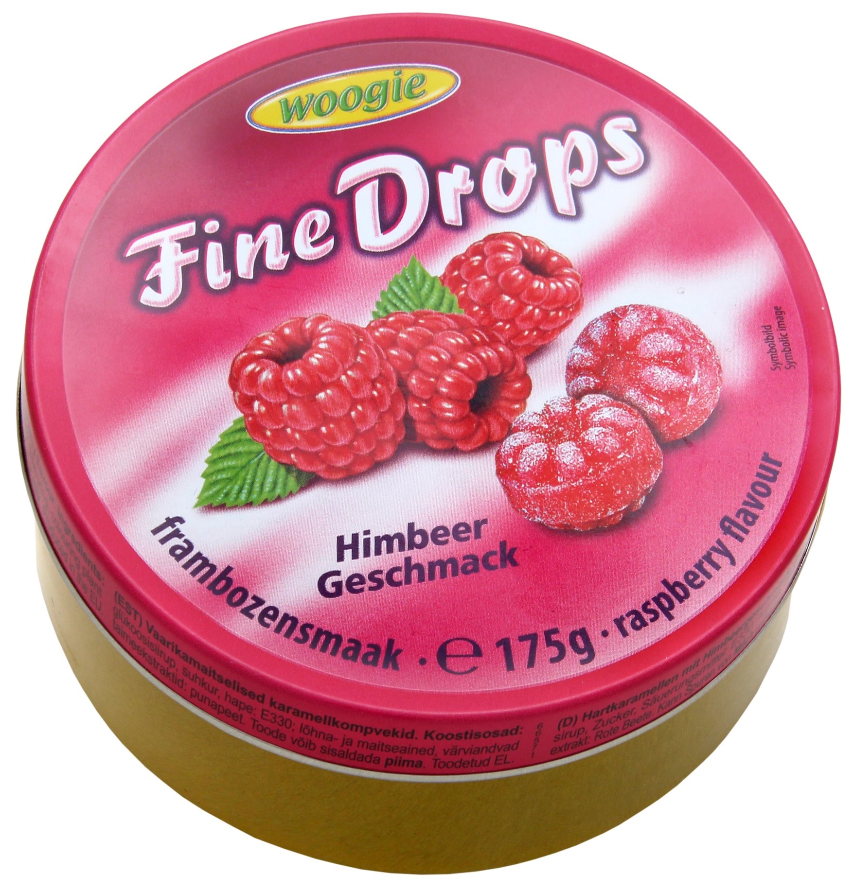 GU91368Woogie malinové bonbony v metal. dóze 200g