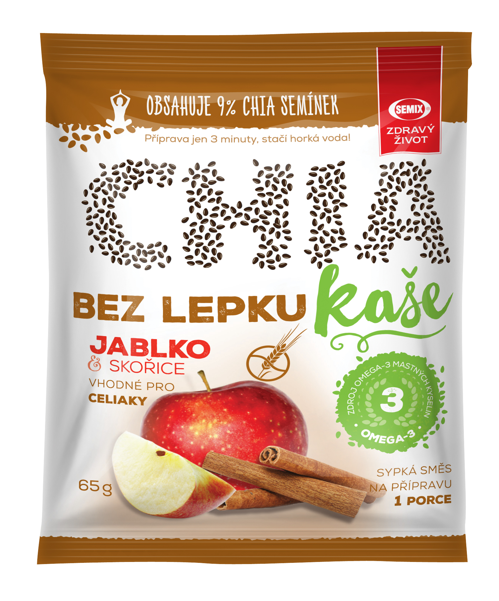 SEM054Vícezrnná chia kaše jablko a skořice bez lepku 65g