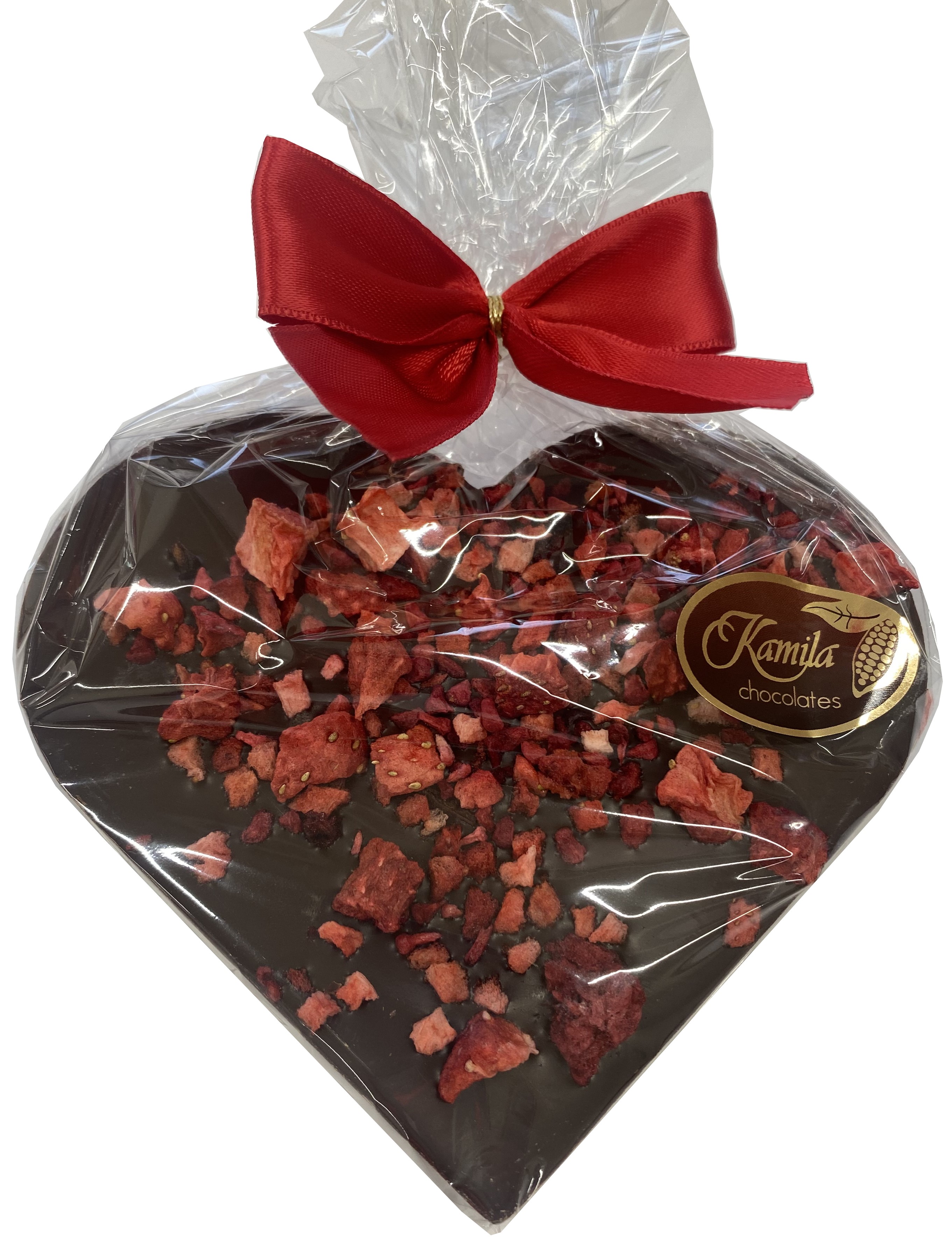 CK001Srdce z hořké čokolády sypané lyofilizovaným ovocem 100g