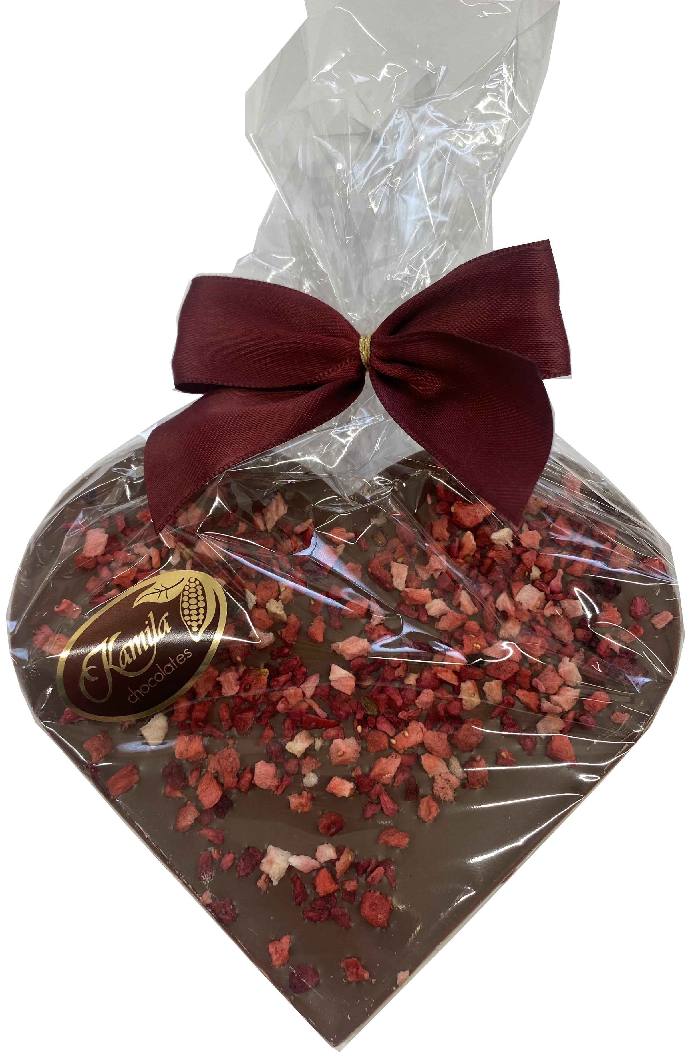CK002Srdce z mléčné čokolády sypané lyofilizovaným ovocem 100g
