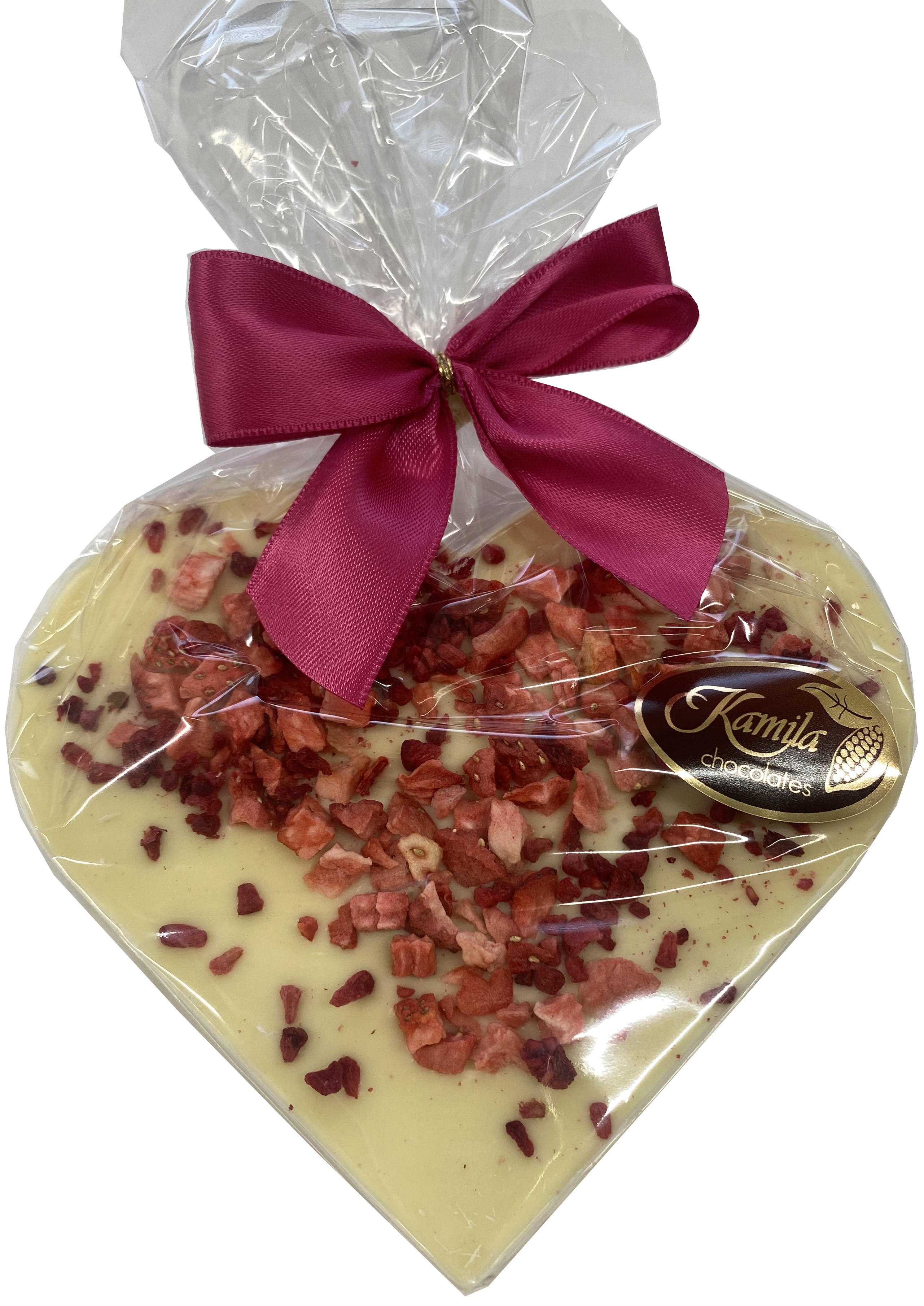 CK003Srdce z bílé čokolády sypané lyofilizovaným ovocem 100g