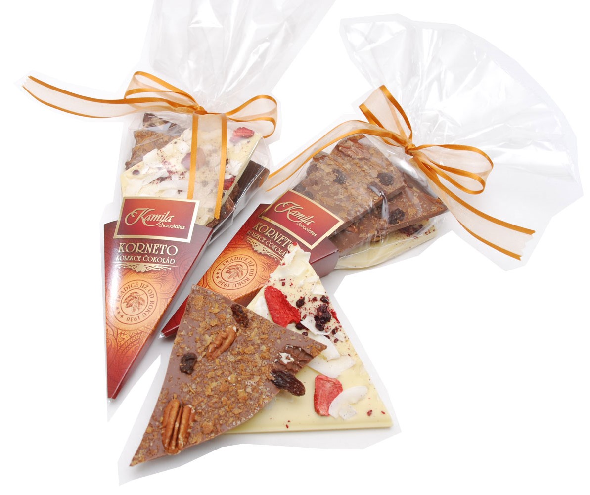 CK012Korneto Z LÁSKY - MIX lámaných čokolád s posypem v dárkovém…