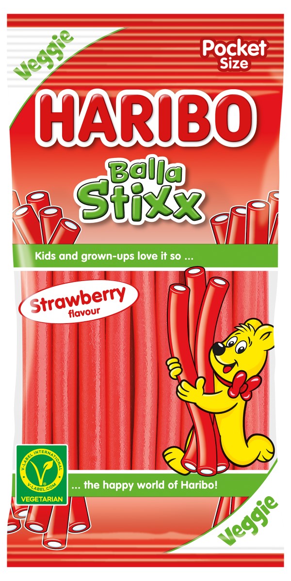 HAR1137HARIBO BALLA STIXX STRAWBERRY - ovocné pendreky s jahodovou…
