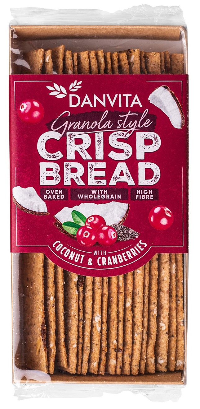 DAN027Křehké pšeničné granola plátky s kokosem, brusinkami a chia…
