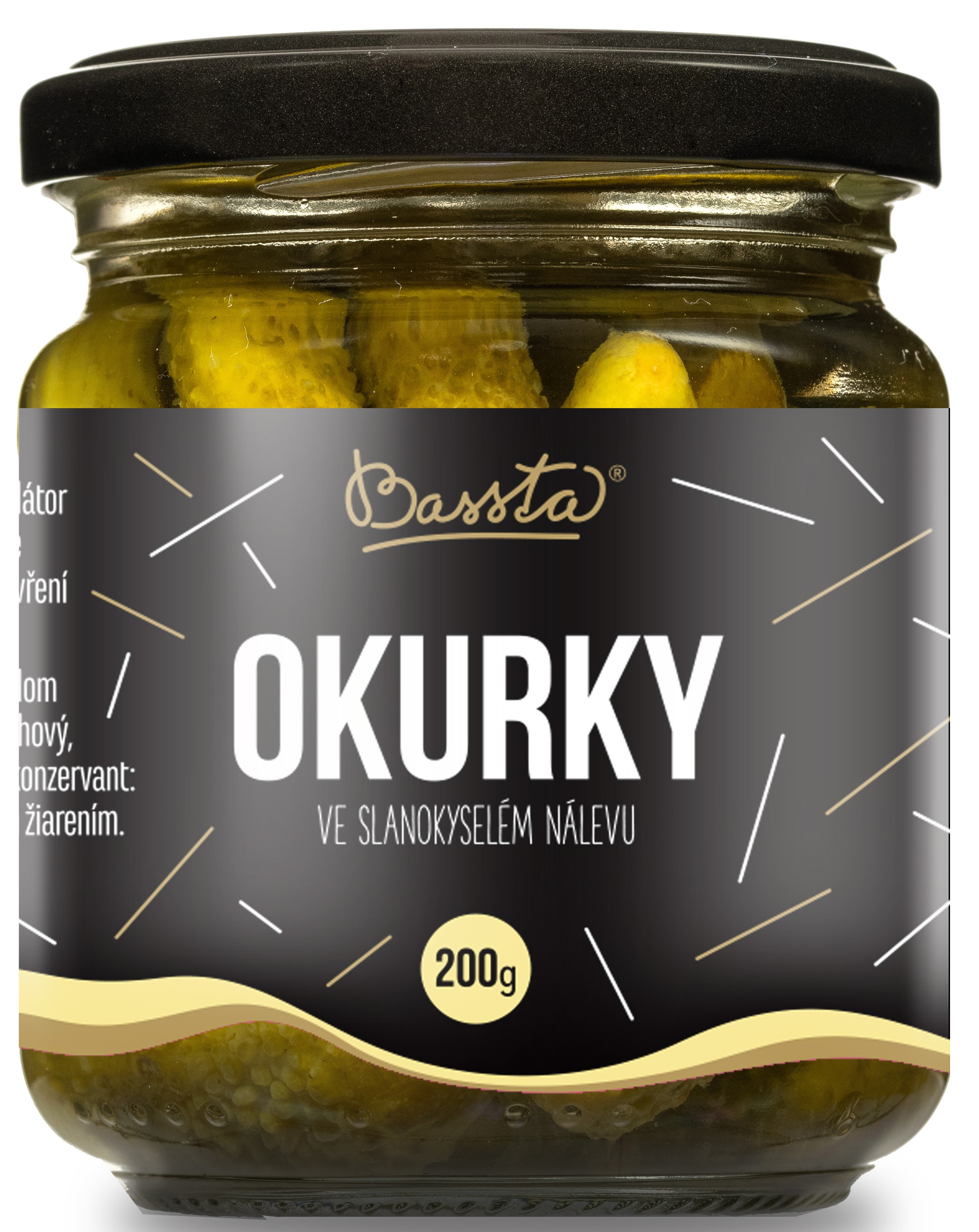 Okurky 3-4cm ve slanokyselém nálevu 200g sklo BASSTA